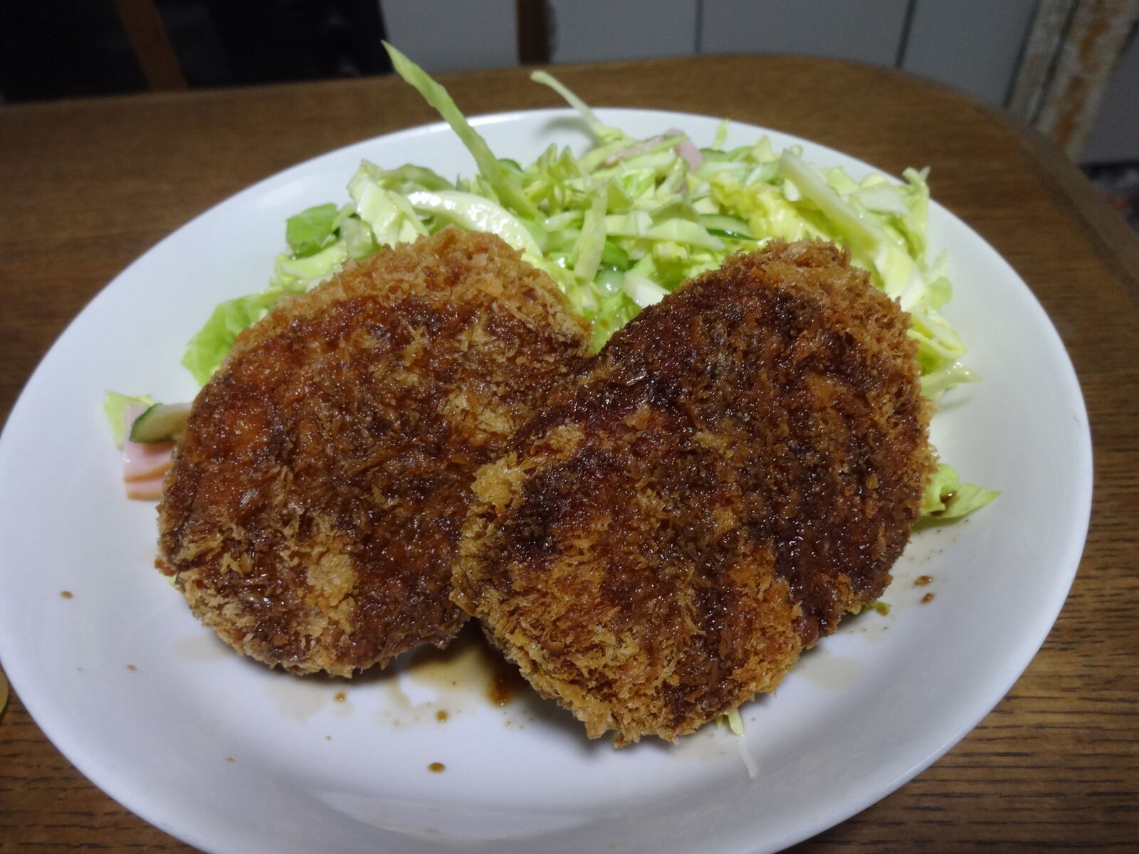 昼飯は、ベジとコロッケ。最近は疲れてきて体力が必要で、昼飯が抜けません。