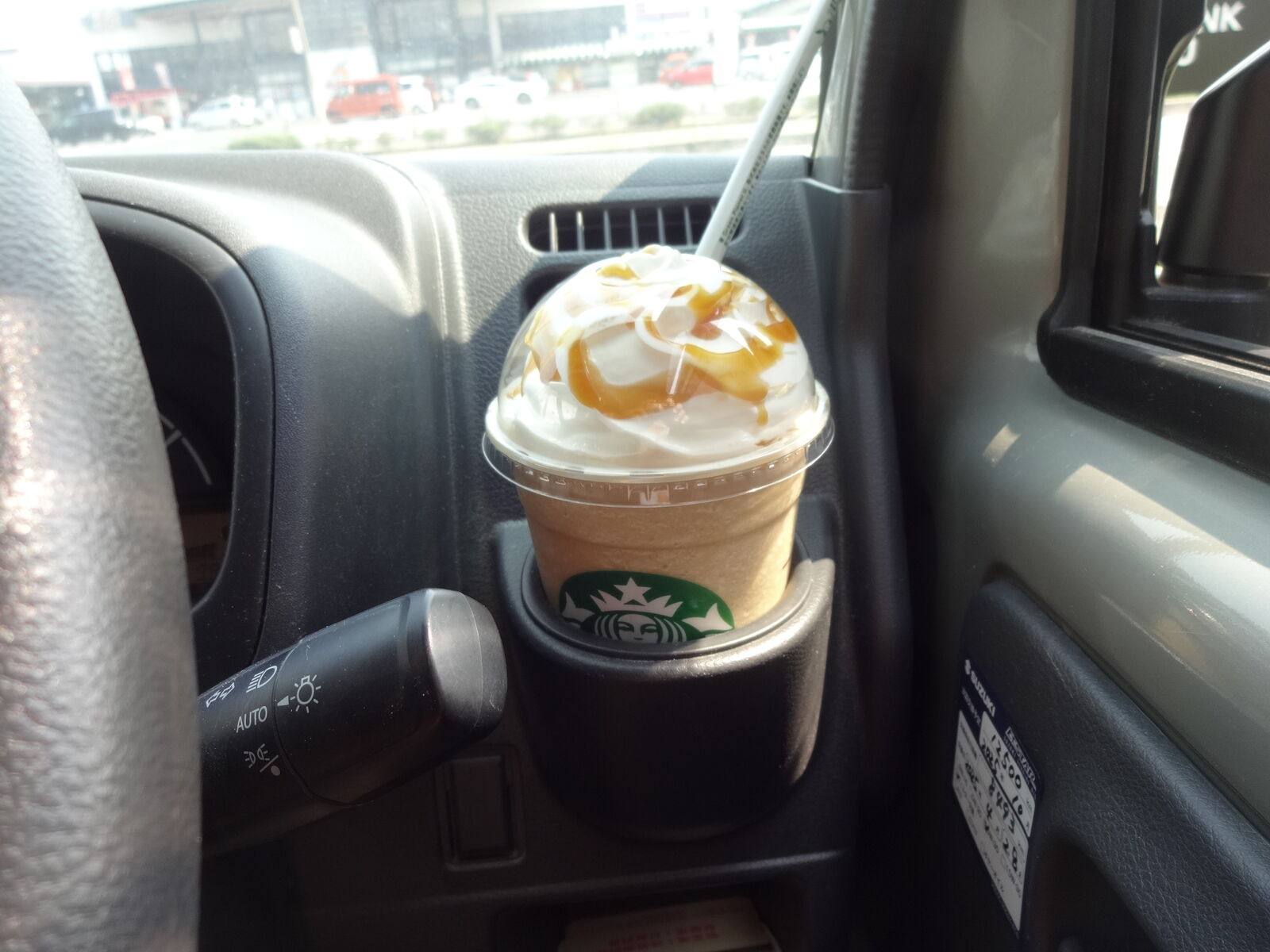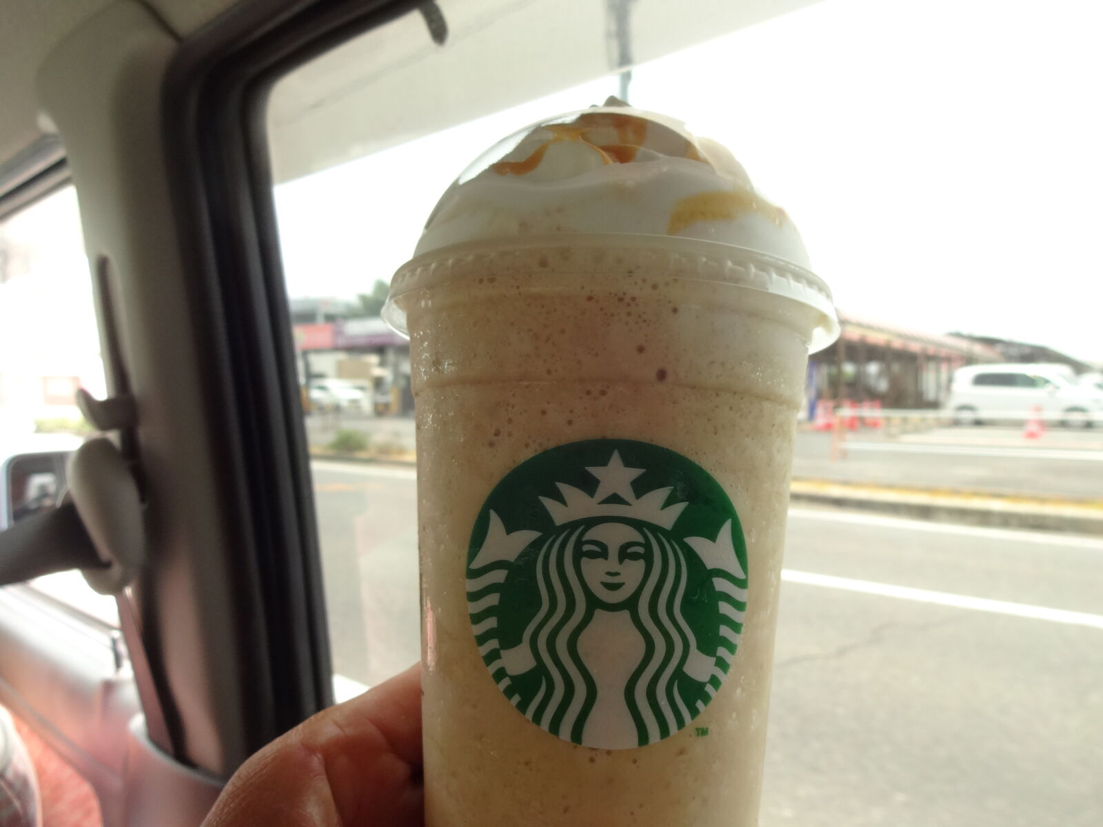 もう一回スタバ「キャラメルフラペチーノホイップ多めグランデサイズ」。