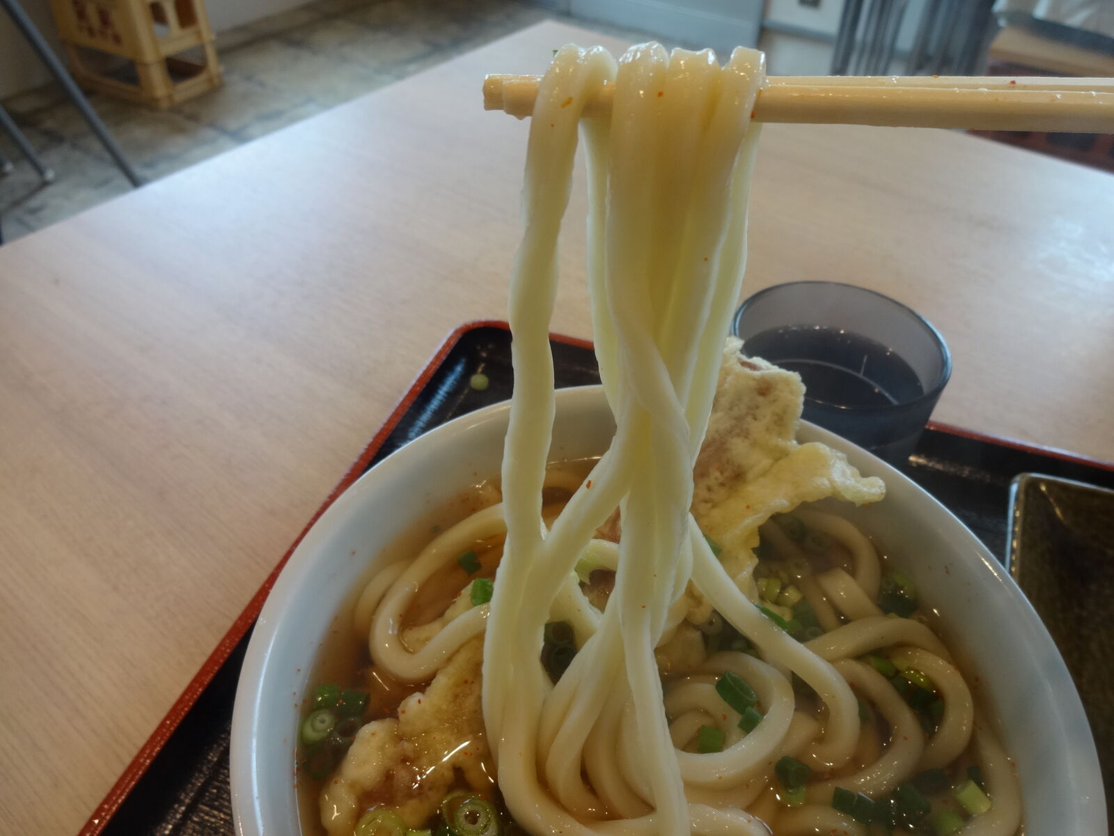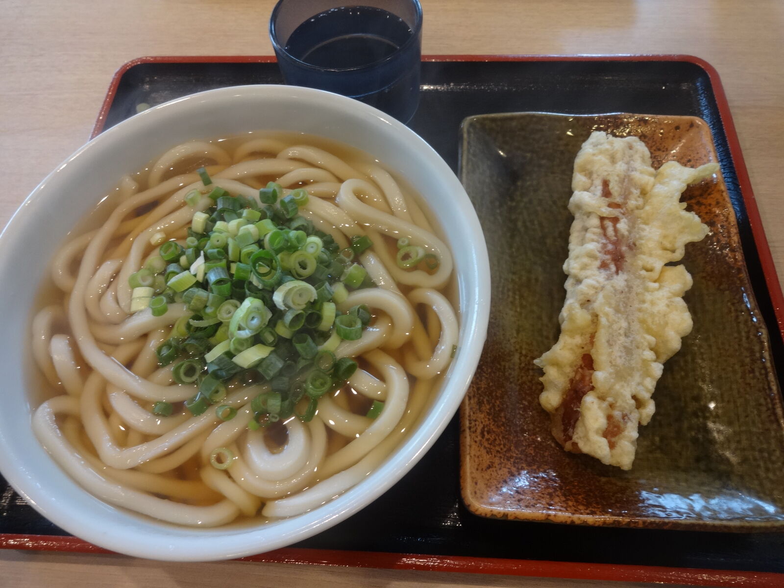 かけうどん(大)+ちくわ天。今日は、イカ天は待っていてくれませんでした。