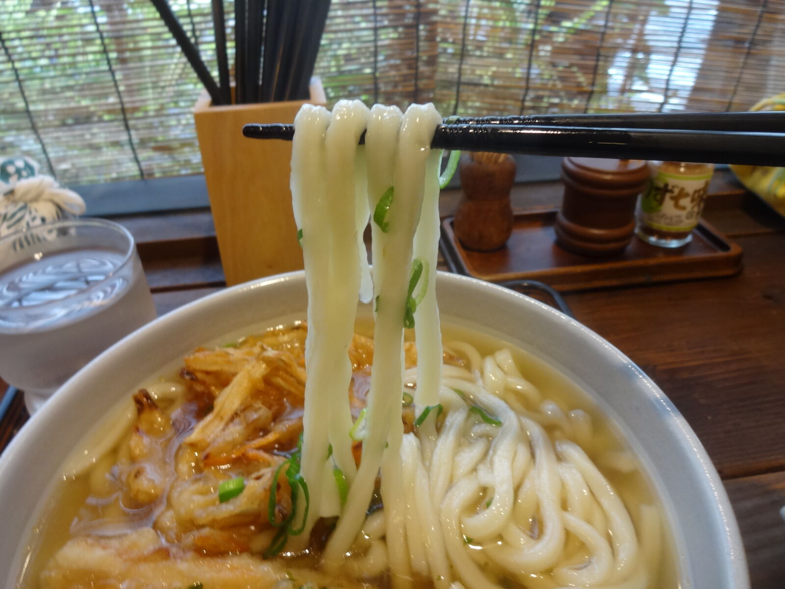 ふと、気づいたんですよ。わたくし、コーヒーの味なんてわからないしお金ももったいないのでカフェでコーヒーブレイクはしないのですが、カウンター席に座り歩道に打ちつける雨や、水しぶきを上げて走る車や、傘を差して足早に水たまりを越えていく街人をぼーっと眺めていられるうどん屋って、あんまり無いかな。