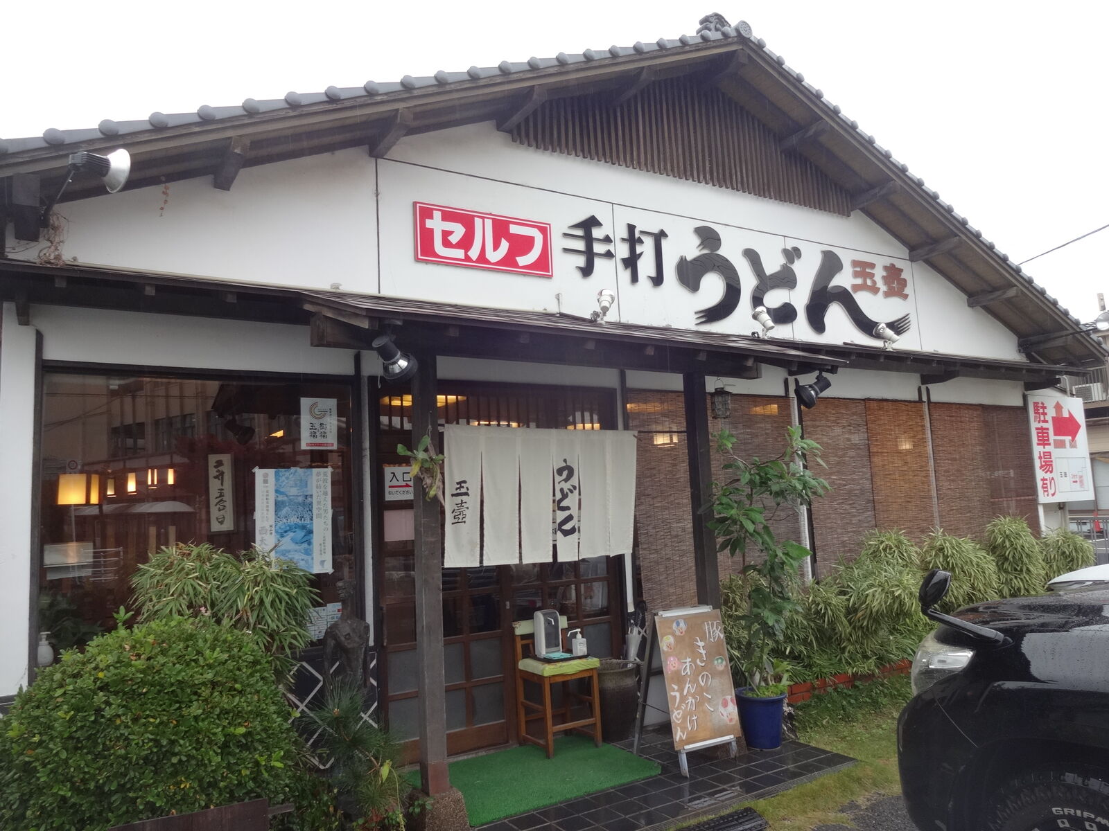 駐車場に車があると邪魔だけど、玉壺でつかの間のうどんブレイク。